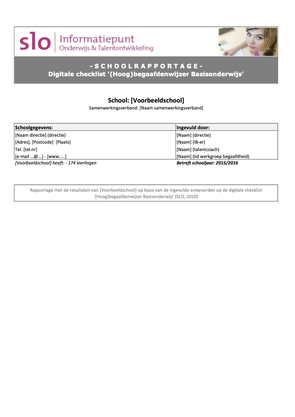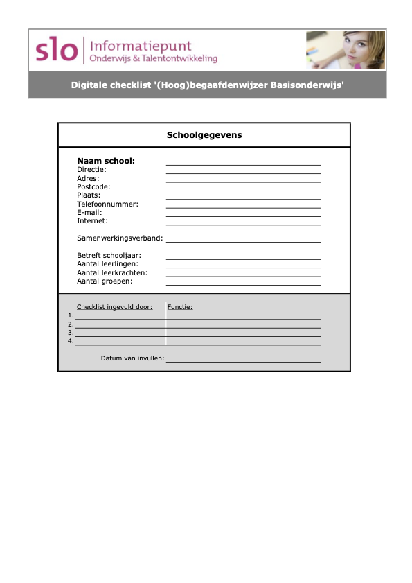 Zeer handige checklist van het SLO waarop in detail de belangrijkste aandachtspunten staan voor basisscholen op het gebied van hoogbegaafdheid. Helpt om beleid inzichtelijk & concreet te maken voor bijvoorbeeld collega's.